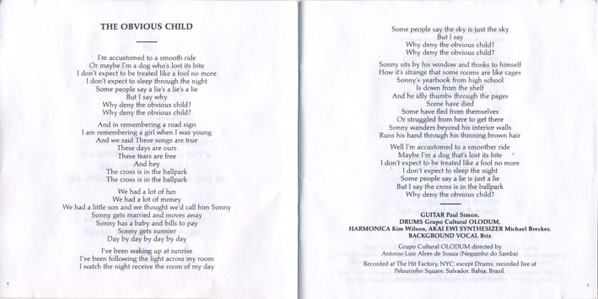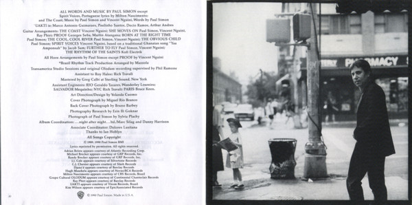 Following the success of 1986's Graceland, on which he worked principally with South African musicians, Simon broadened his interests in diverse forms of music from around the world. He turned to Latin America for the musicians and rhythms which characterize much of this album, partnering with Afro-Brazilian superstars Grupo Cultural Olodum, masters of the Bahia style of samba (called Samba-Afro). The group's drumming is featured on the opening song and first single, "The Obvious Child". Brazilian singer-songwriter Milton Nascimento co-wrote "Spirit Voices" and contributed some vocals. Guest appearances were also made by mandolin- and "guitarra baiana" master Armandinho, another Bahia musician, and by Afro-Cuban drummer Francisco Aguabella, and Puerto Rican-born drummer Giovanni Hidalgo. Another collaborator was jazz percussionist and master of the berimbau, Naná Vasconcelos; jazz guitarist Rafael Rabelo also played on the album, along with many other Brazilian musicians.