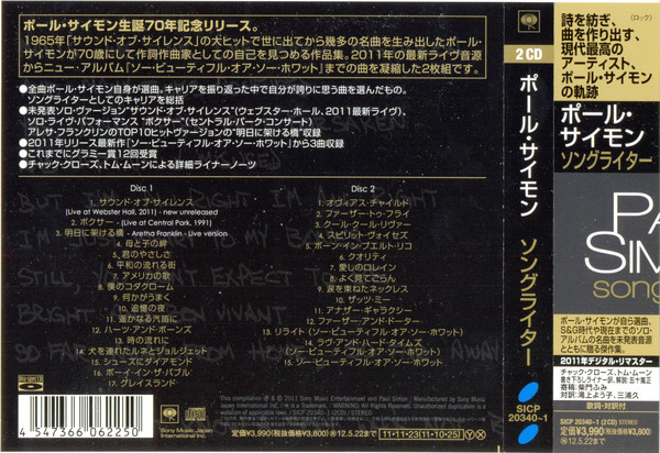 The second disc begins with four songs from The Rhythm of the Saints, highlighted by the much praised "Spirit Voices" with its Portuguese interpolation by Milton Nascimento. There are a couple of songs from Simon's ill-fated Broadway venture The Capeman. If the music represented here--the dramatic "Born in Puerto Rico" and the doo wop throwback, "Quality"--is any indication, one has to wonder why the show didn't do better. The album ends with selections from his 2011 release So Beautiful or So What including the title song. If the music on this disc is not as well known, it is nonetheless indicative of the composer's range and the continued variety of his interests.