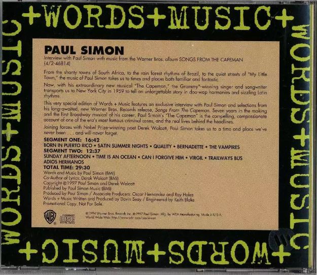 PAUL SIMON Words & Music Scarce US Promo Only CD.