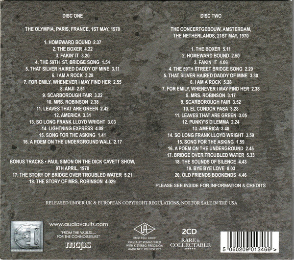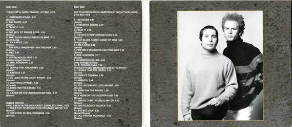 Even live rare Cds add little lustre to the Simon & Garfunkel legend, but the the best is probably this CDs recorded in 1970 on their last tour togheter.
