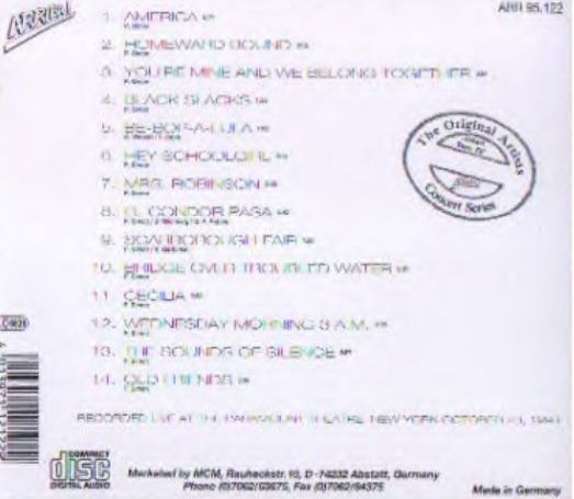 This is a great concert LIVE at Paramount Theater NY 23/10/1993 ( Simon & Garfunkel ) and Mountain view California 06/11/1993 ( Paul Simon solo )