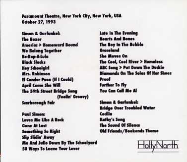 Simon & Garfunkel / Paul Simon : Recorded Live at The Paramount Theater, New York 27/10/1993