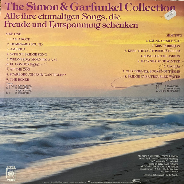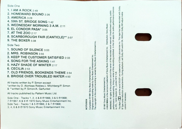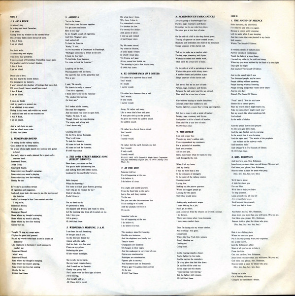 Water and Mrs Robinson. Complete with fold out lyric and biography insert plus